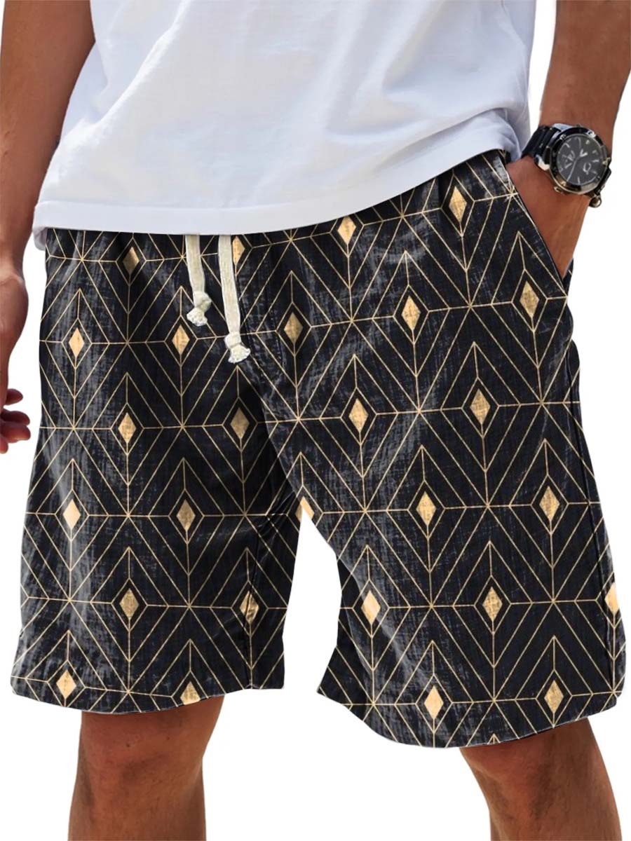 Geometric Line Decorative Pattern Cotton And Linen Beach Shorts