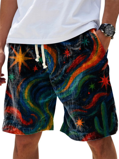 Men's Abstract Geometric Pattern Art Print Cotton And Linen Beach Shorts