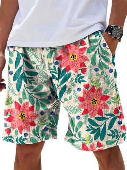 Men's Colorful Flowers Floral Print Cotton And Linen Beach Shorts