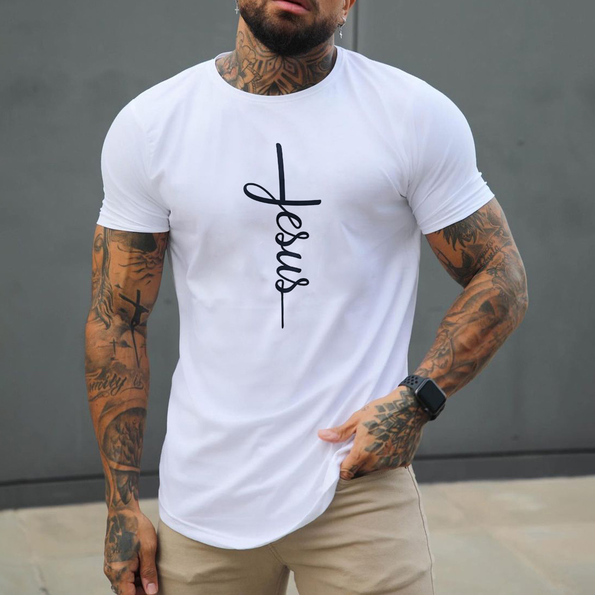 Men's Jesus Basic All-Match Comfortable Round Neck Cotton T-Shirt